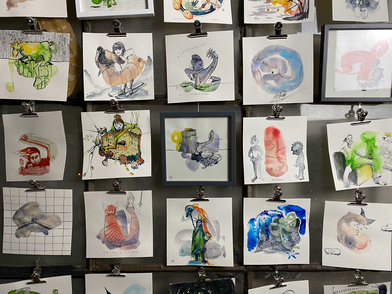 This October was ink month, again! A daily sketch in ink, starting from a prompt and this year also using colored backgrounds.