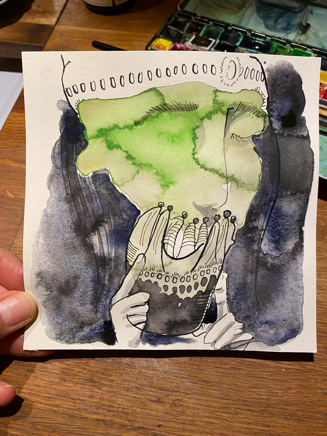 | Technique & Materials: | Ink drawing on paper, Water color on paper |