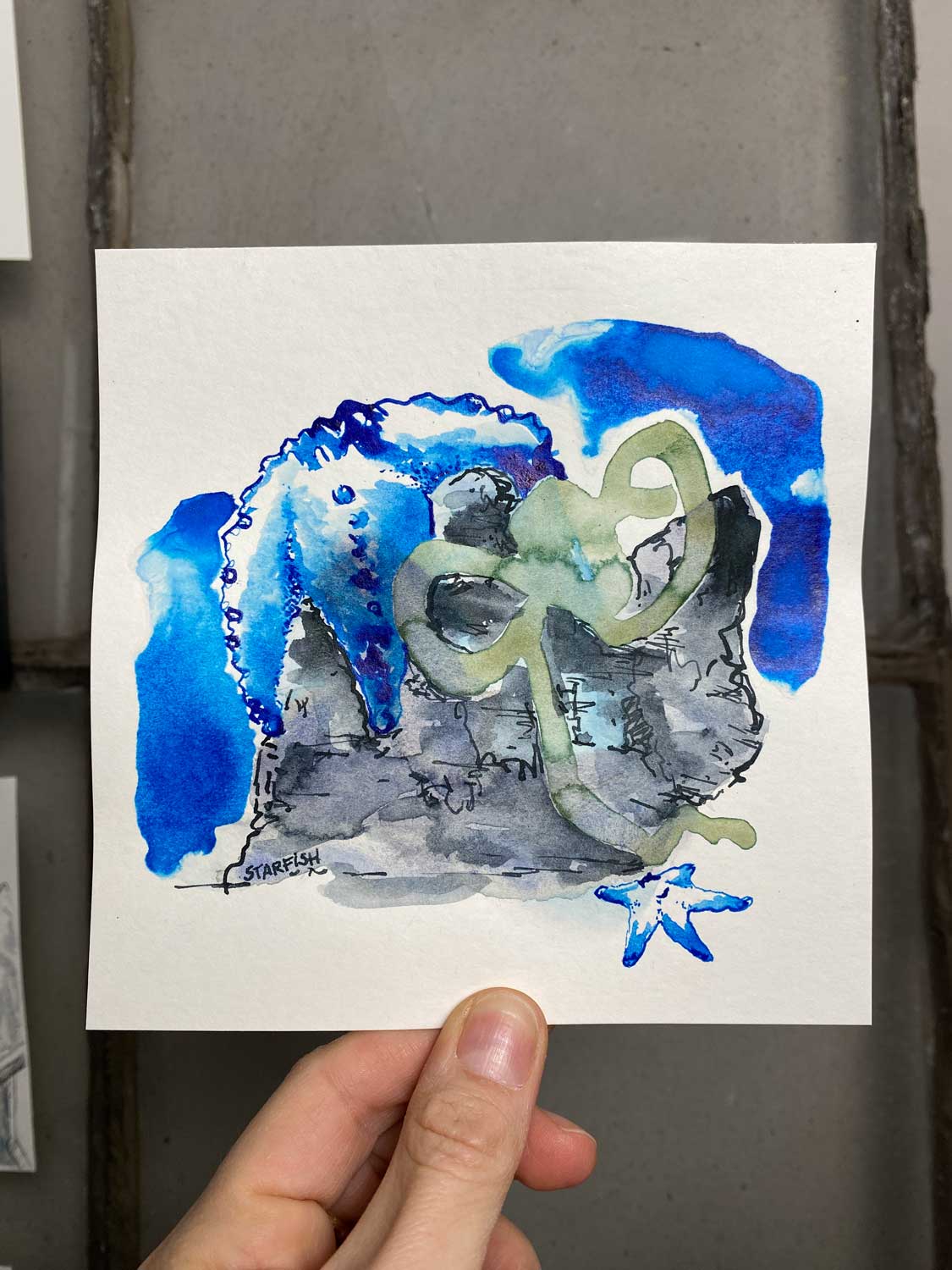 | Technique & Materials: | Ink drawing on paper, Water color on paper |