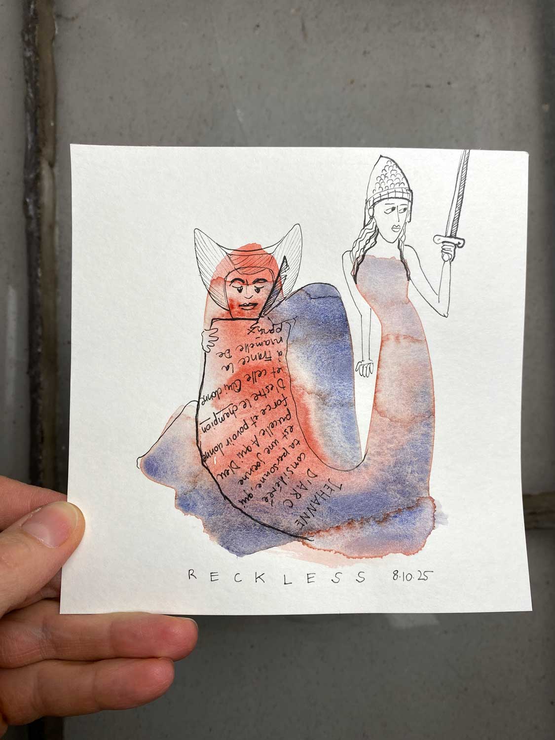 Day 8: Christine de Pizan (around 1364-1430) wrote an ode praising Jeanne d'Arc when Jeanne was still alive. Christine was the only one who recognized Jeanne's importance that early—both women were reckless in their own right.
